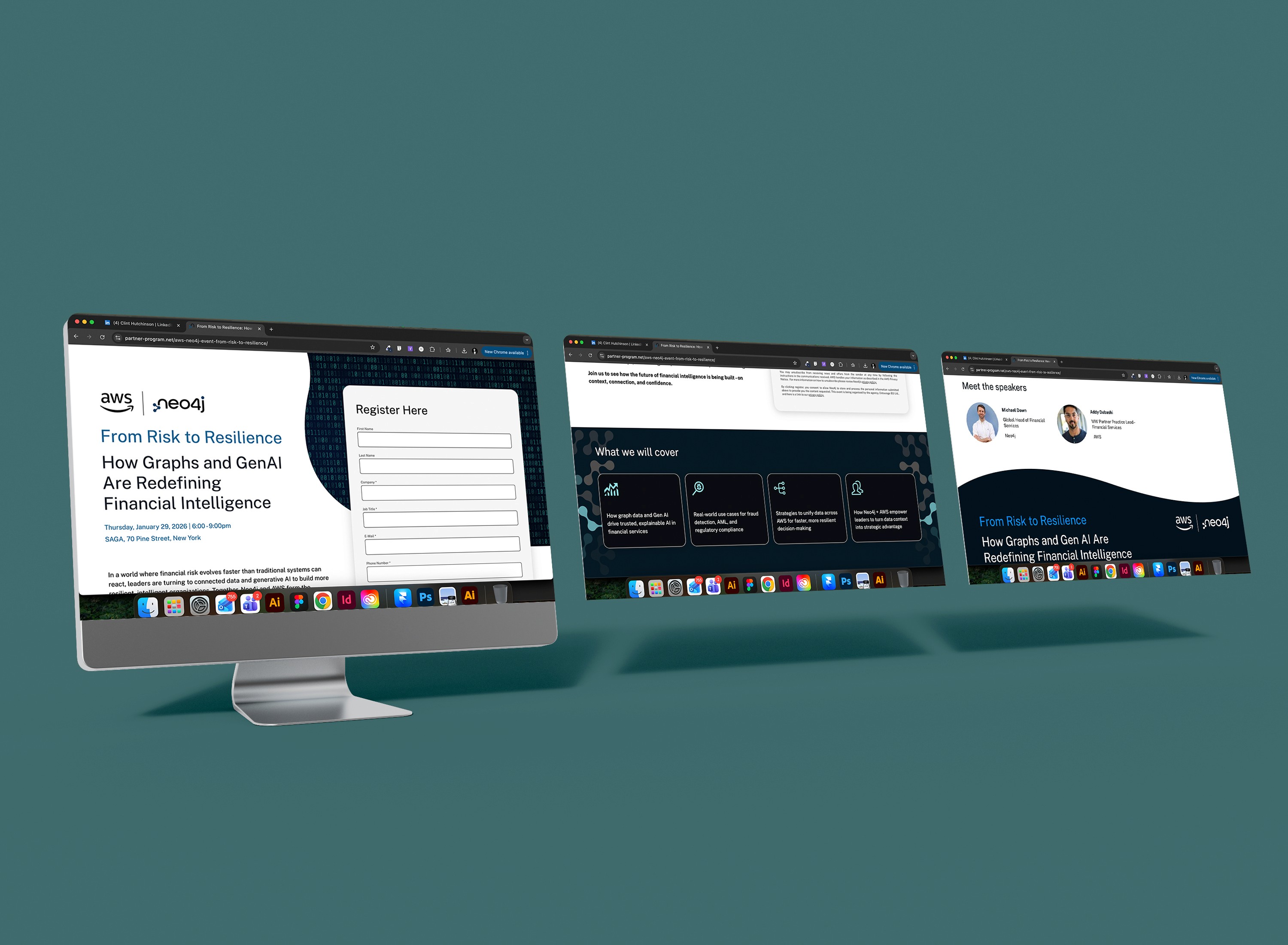 Applied atomic design principles to build modular hero sections, agenda blocks, speaker cards, and social proof units that could flex across event types while maintaining psychological effectiveness.