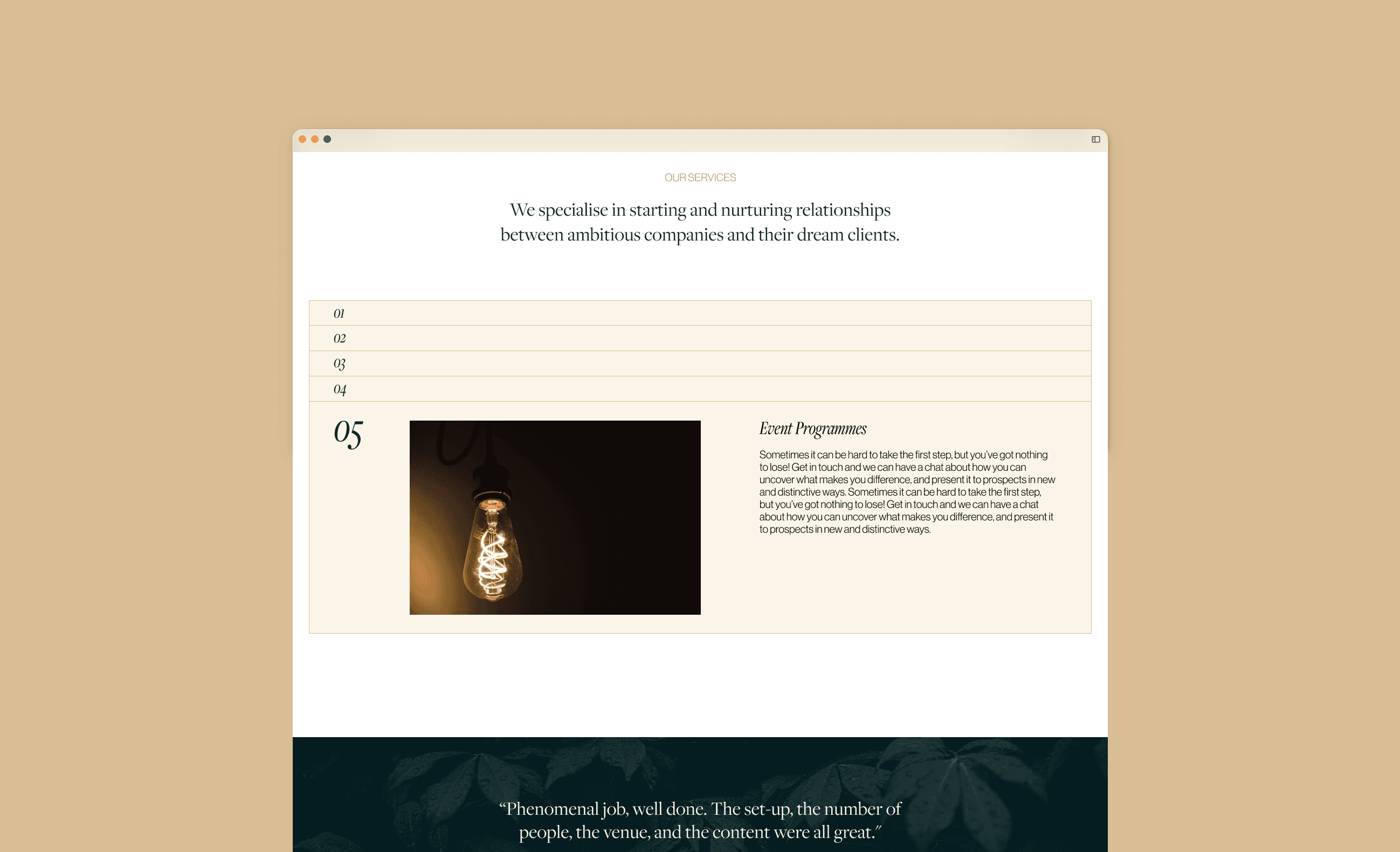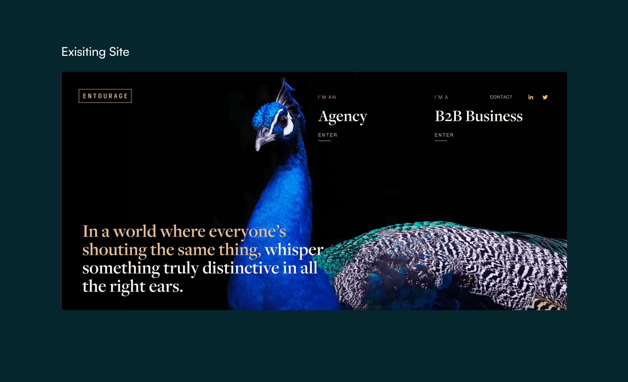 The tension: corporate clients making six-figure event decisions needed proof of capability upfront since Entourage would be producing material with their branding, but the existing structure forced them to scroll through generic content before discovering Entourage's track record with major brands.